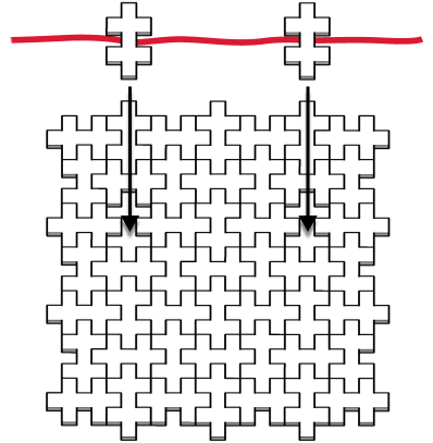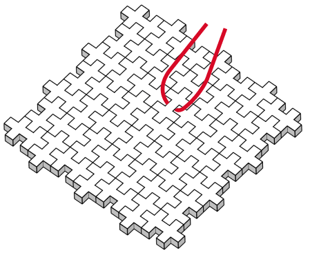 Find your set’s center of gravity and remove one piece. Thread some string underneath the center of the piece. (string not included)